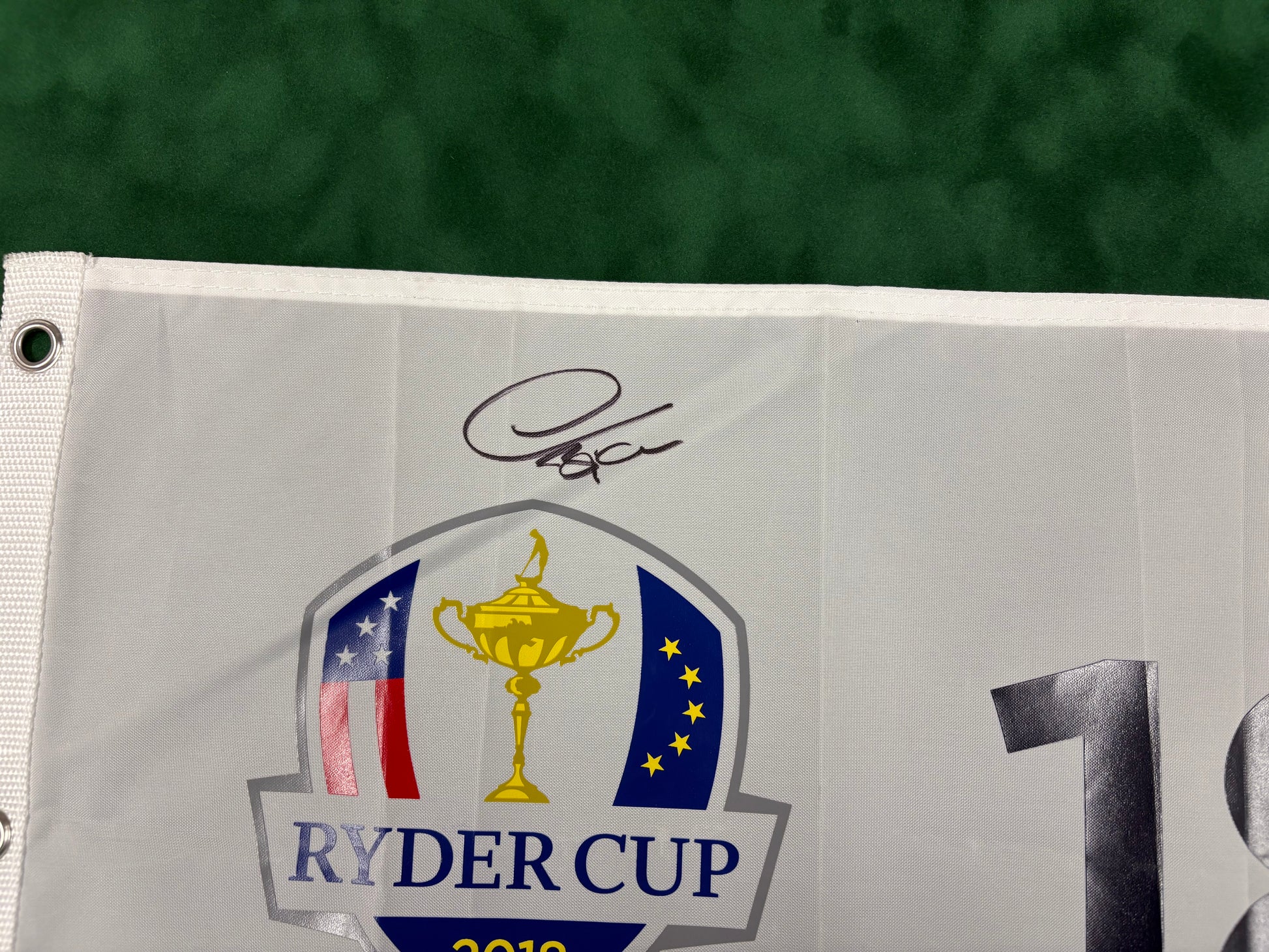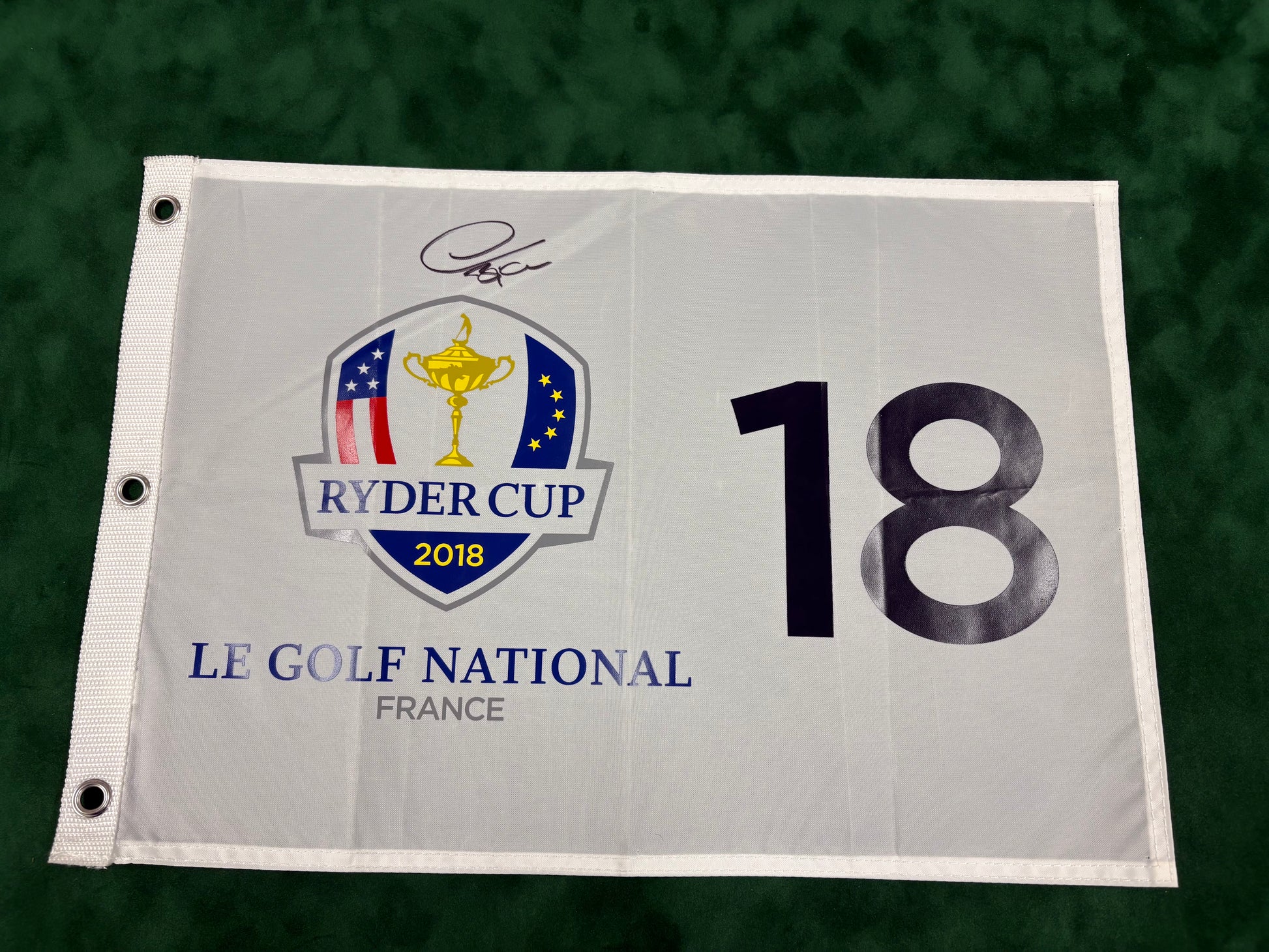 Thomas Bjørn Captain Signed 2018 Ryder Cup at Le Golf National 18th Hole Golf Flag + Cert