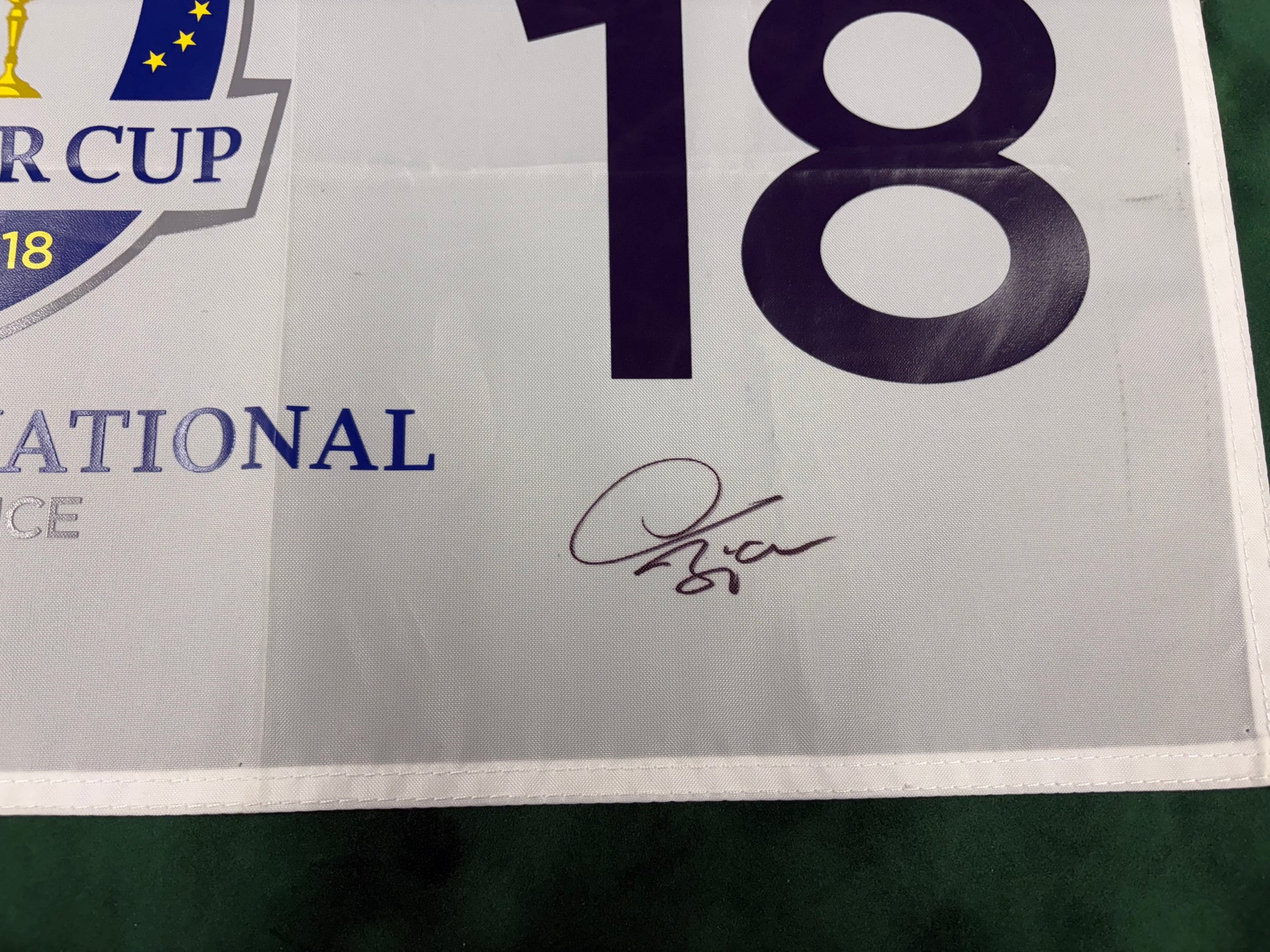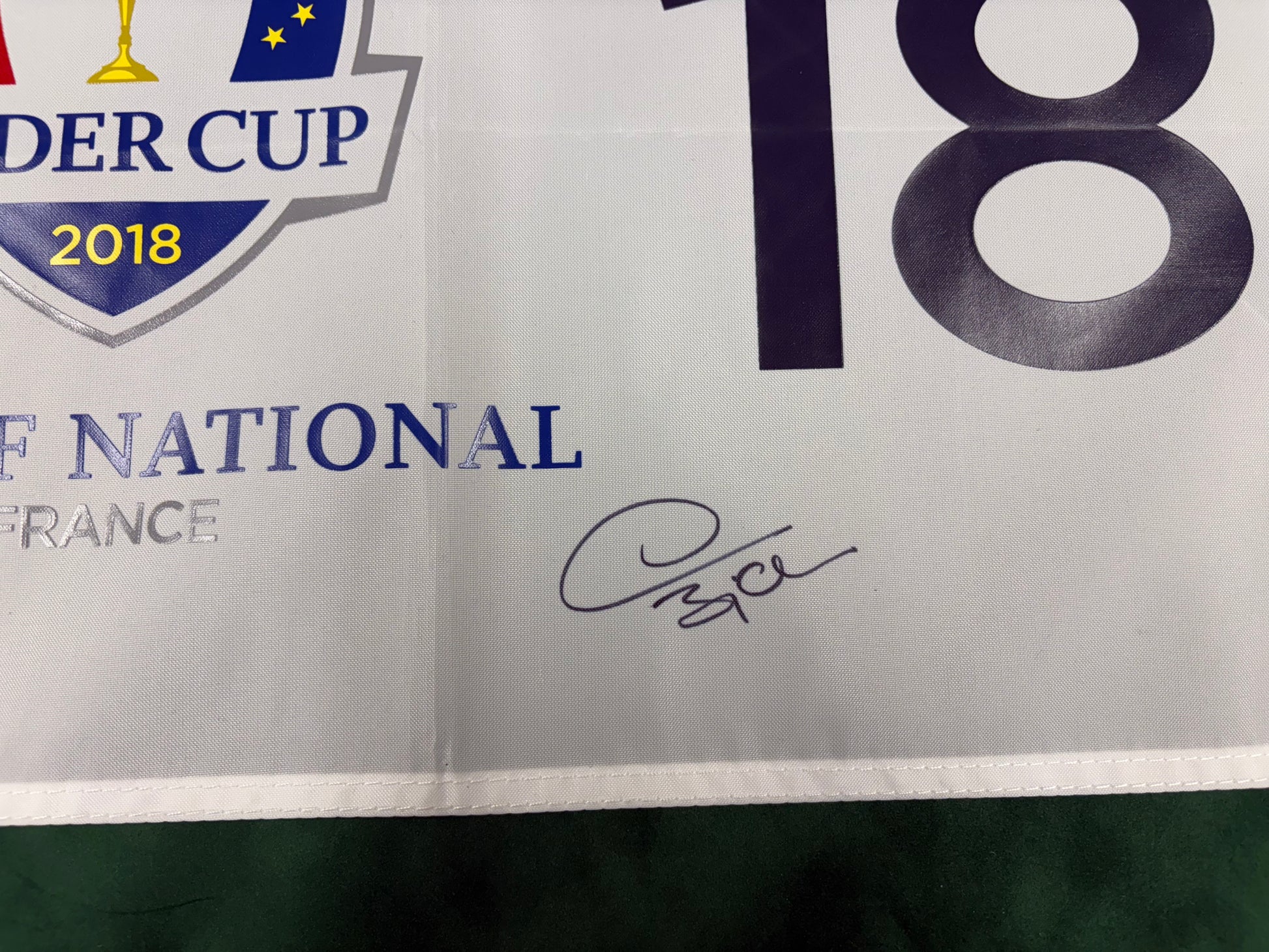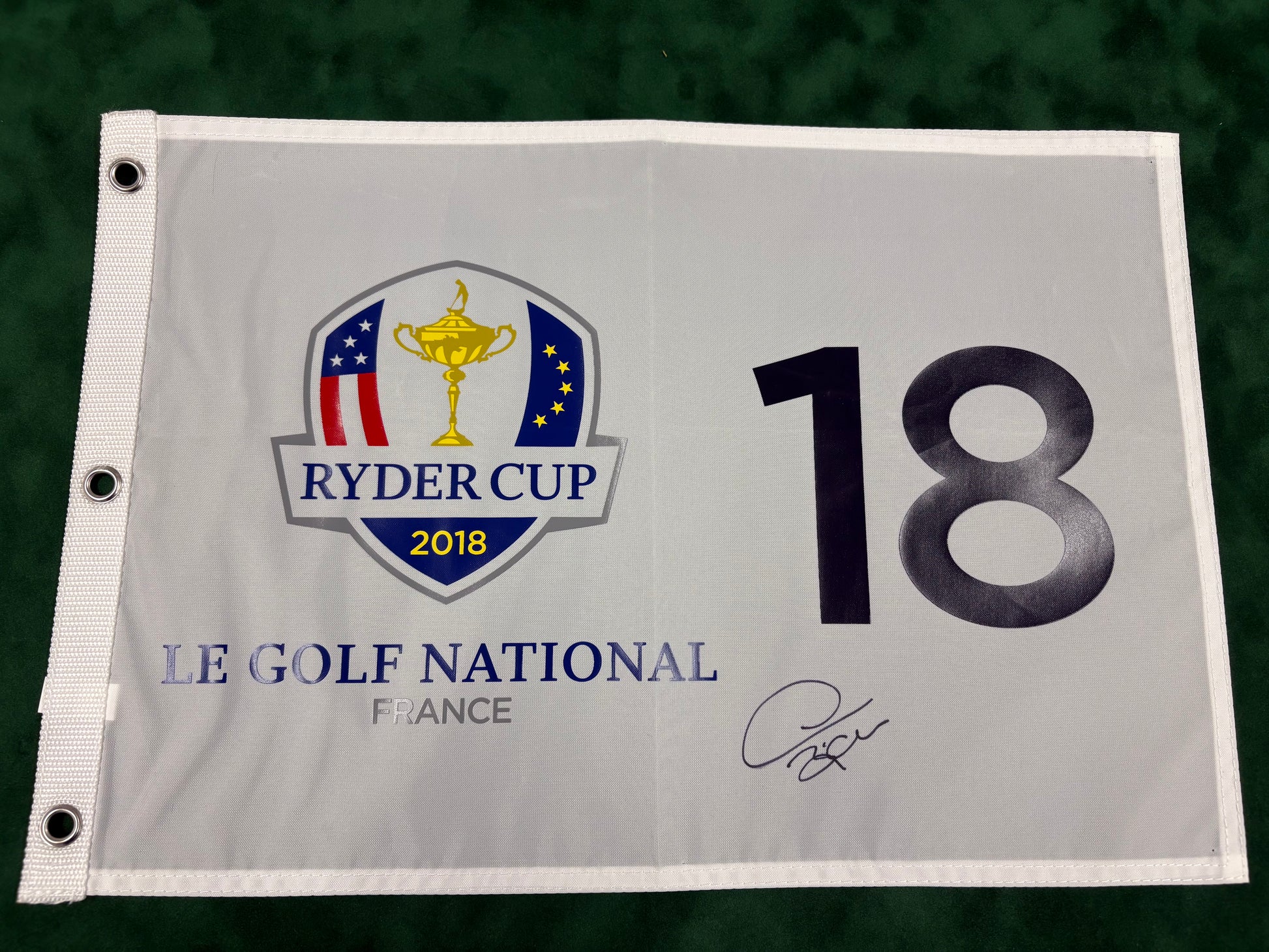 Thomas Bjørn Captain Signed 2018 Ryder Cup at Le Golf National 18th Hole Golf Flag + Cert