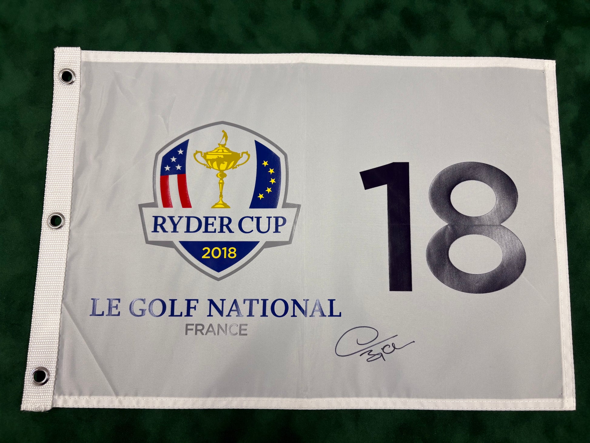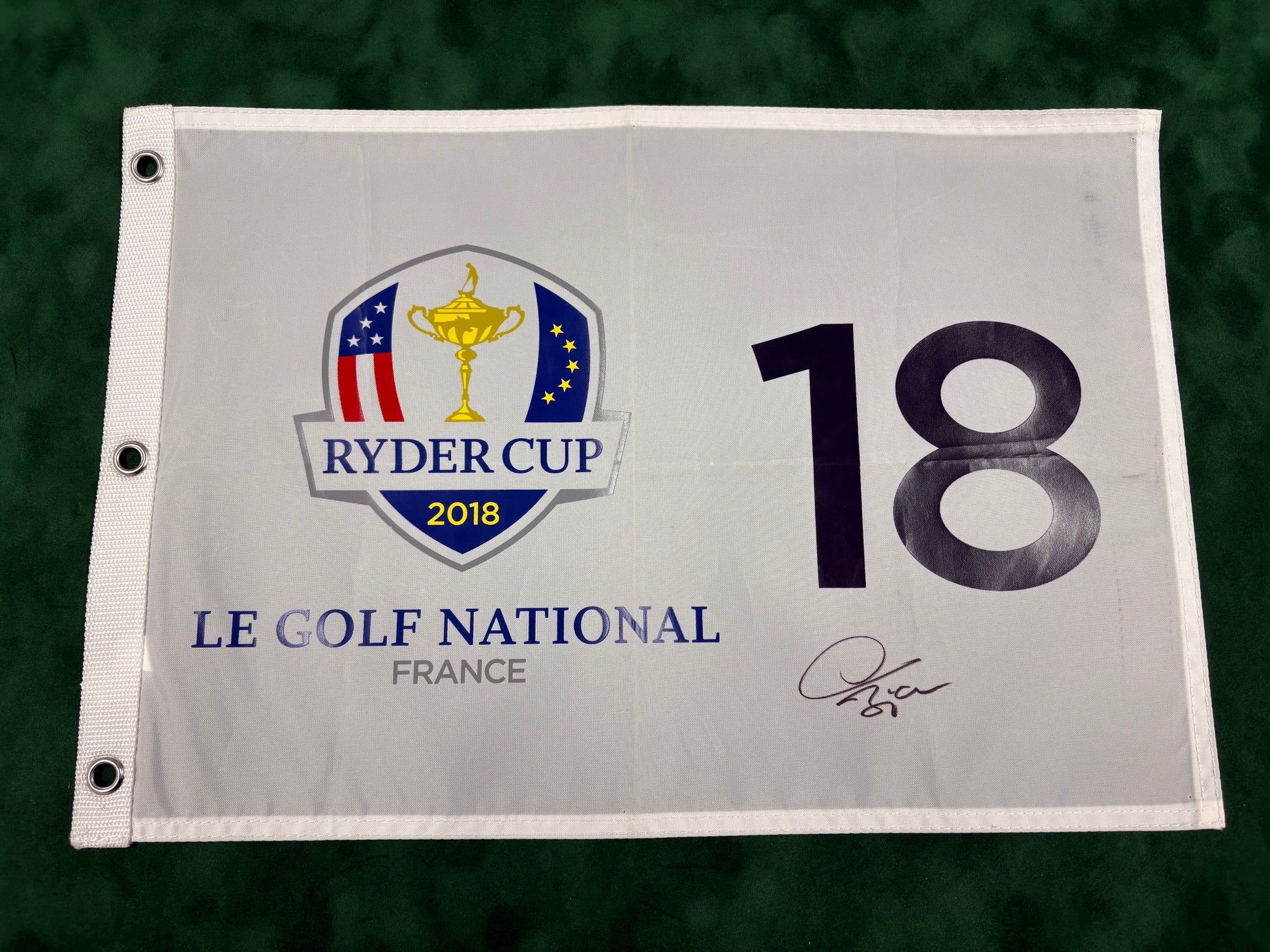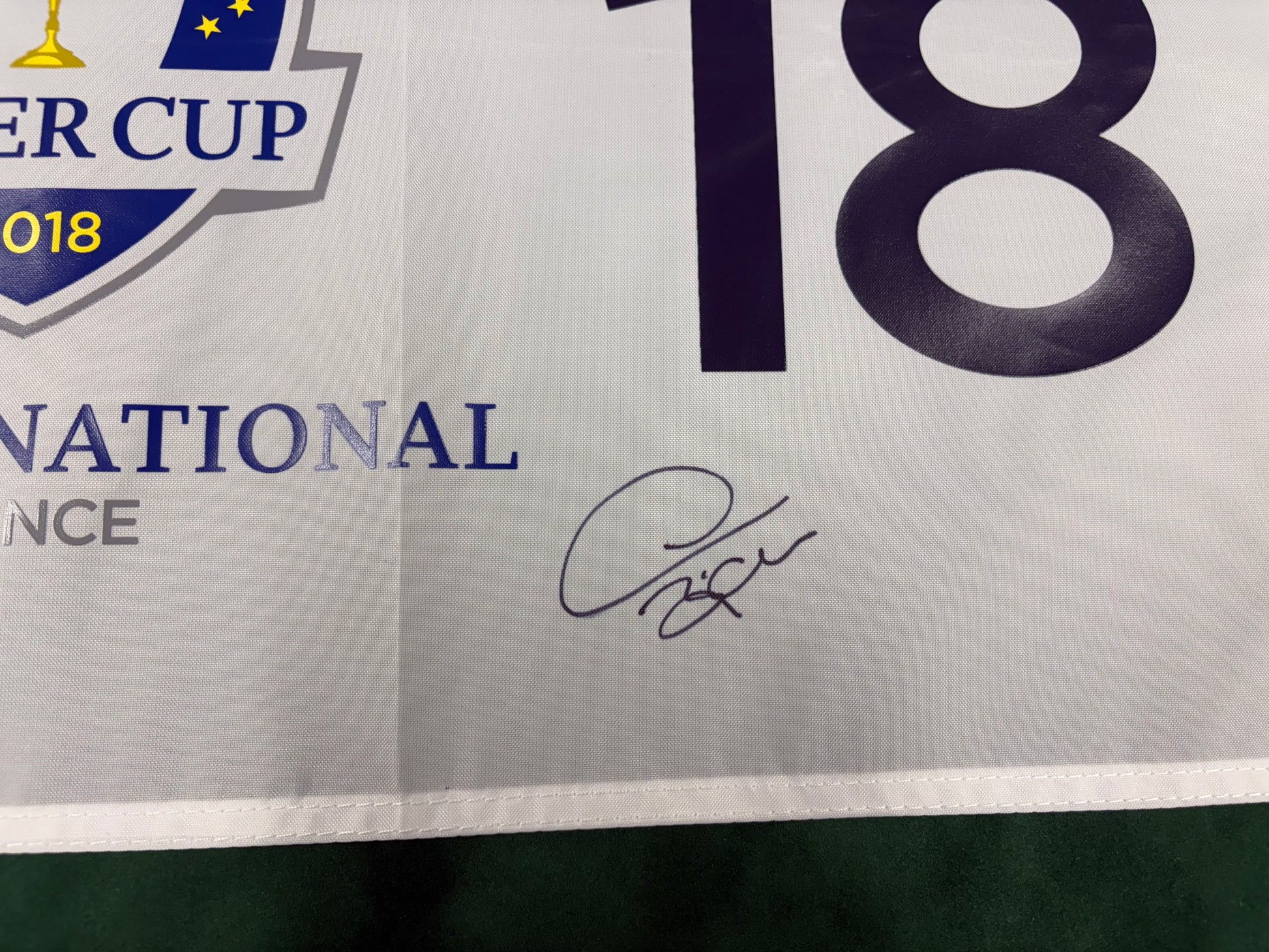 Thomas Bjørn Captain Signed 2018 Ryder Cup at Le Golf National 18th Hole Golf Flag + Cert