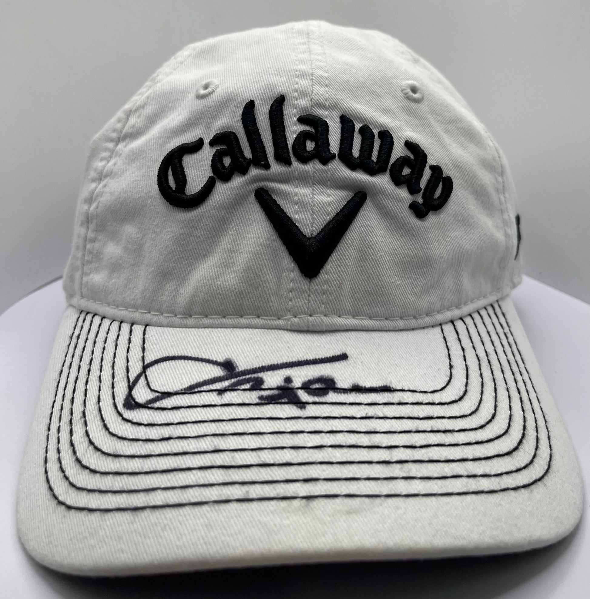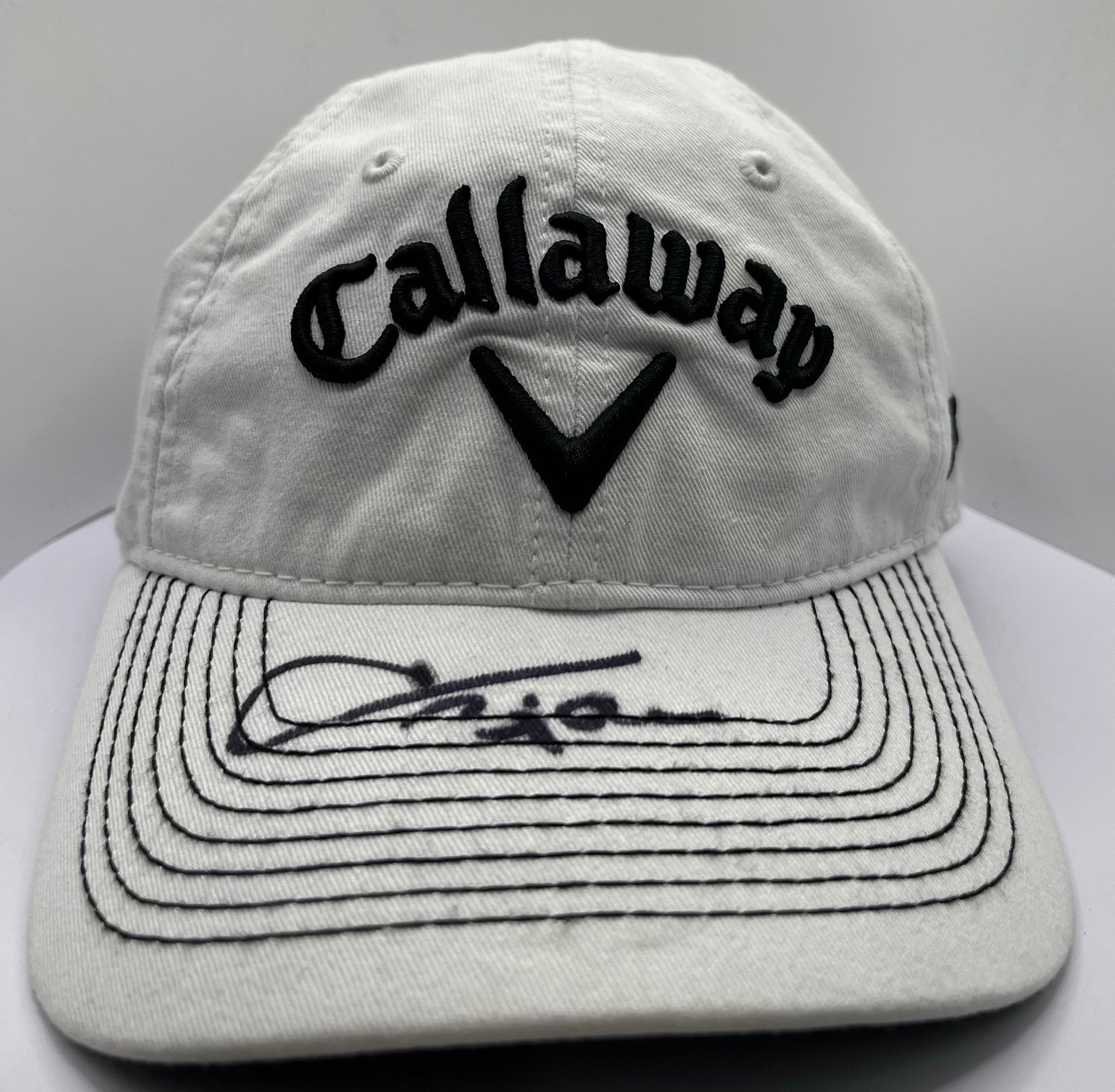This white and black Callaway golf cap, signed by professional golfer Thomas Bjørn, comes with a certificate of authenticity. The perfect addition to any golf enthusiast's collection, this cap provides a piece of sports memorabilia that is both stylish and authentic.