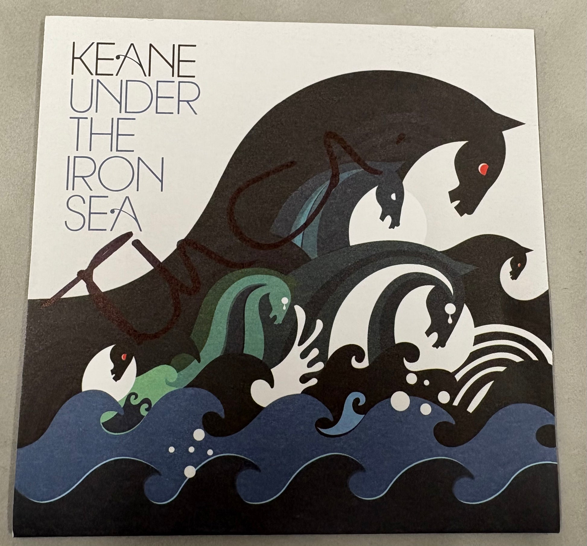 Expertly signed by Tom Chaplin, lead singer of the band Keane, this 'Under The Iron Sea' CD cover comes with a Certificate of Authenticity. Add this unique and valuable piece to your music collection and proudly display it as a symbol of your appreciation for the renowned musician's craft.