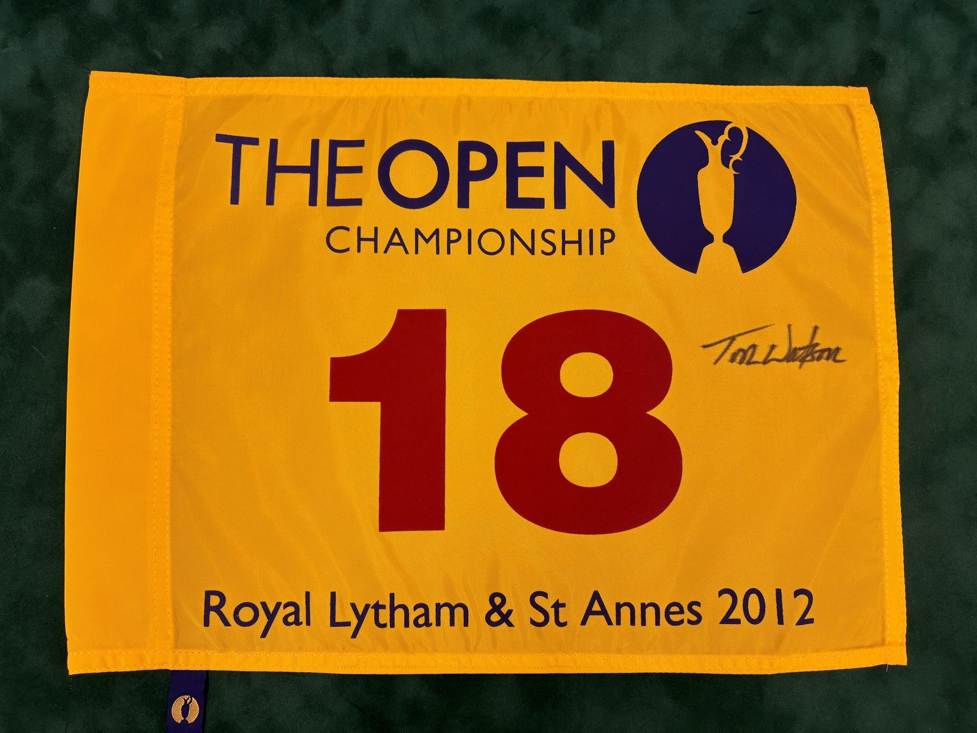 Tom Watson Signed 2012 Open at Royal Lytham & St Annes Golf Flag + Dealer COA