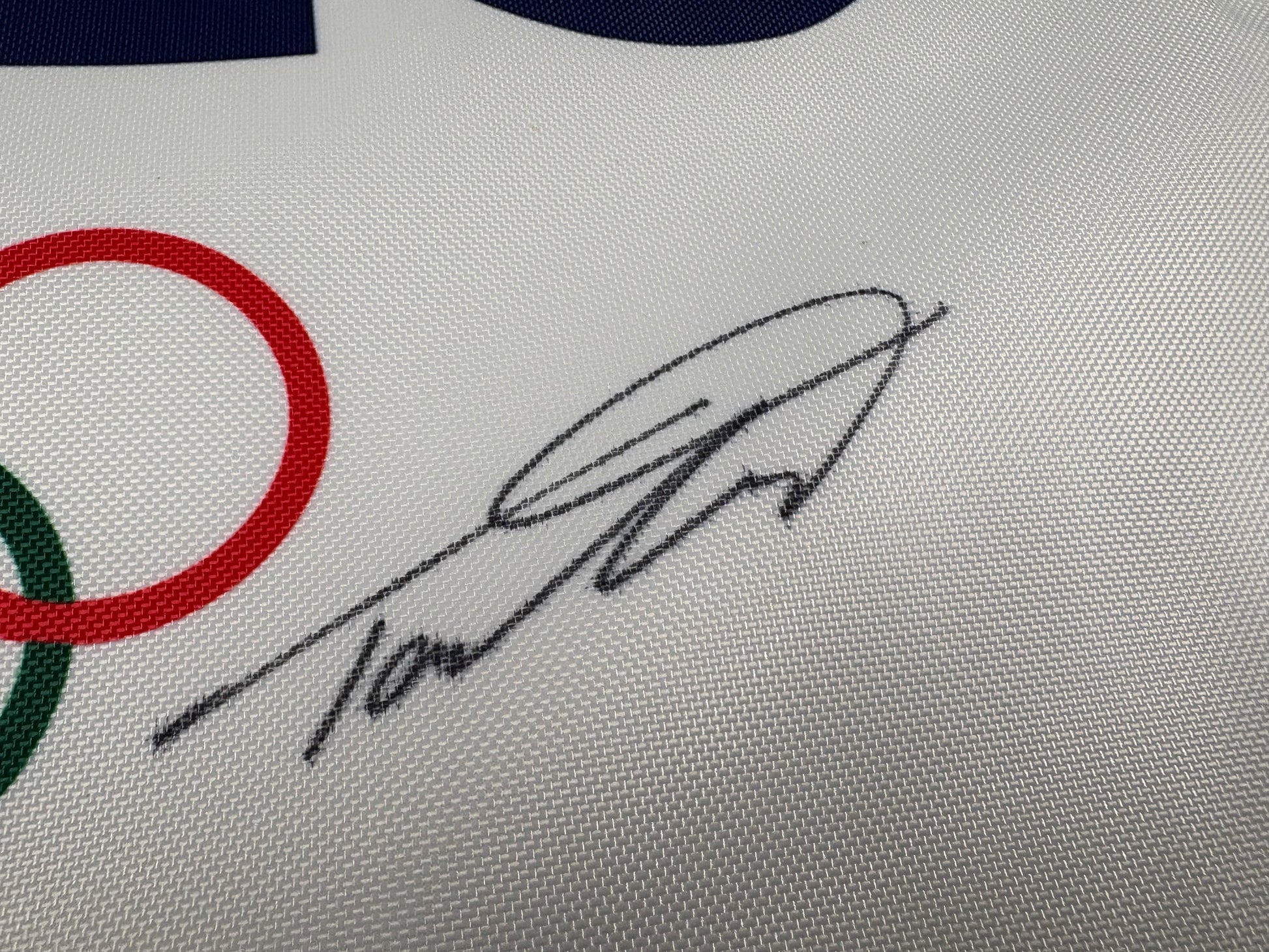Own a piece of Olympic history with this Tommy Fleetwood Silver Medallist Signed Paris 2024 Olympic Golf Pin Flag. Hand-signed by golf champion Tommy Fleetwood, this flag comes with a dealer Certificate of Authenticity. Perfect for any golf enthusiast or collector, this limited edition item is a testament to Fleetwood's incredible talent.