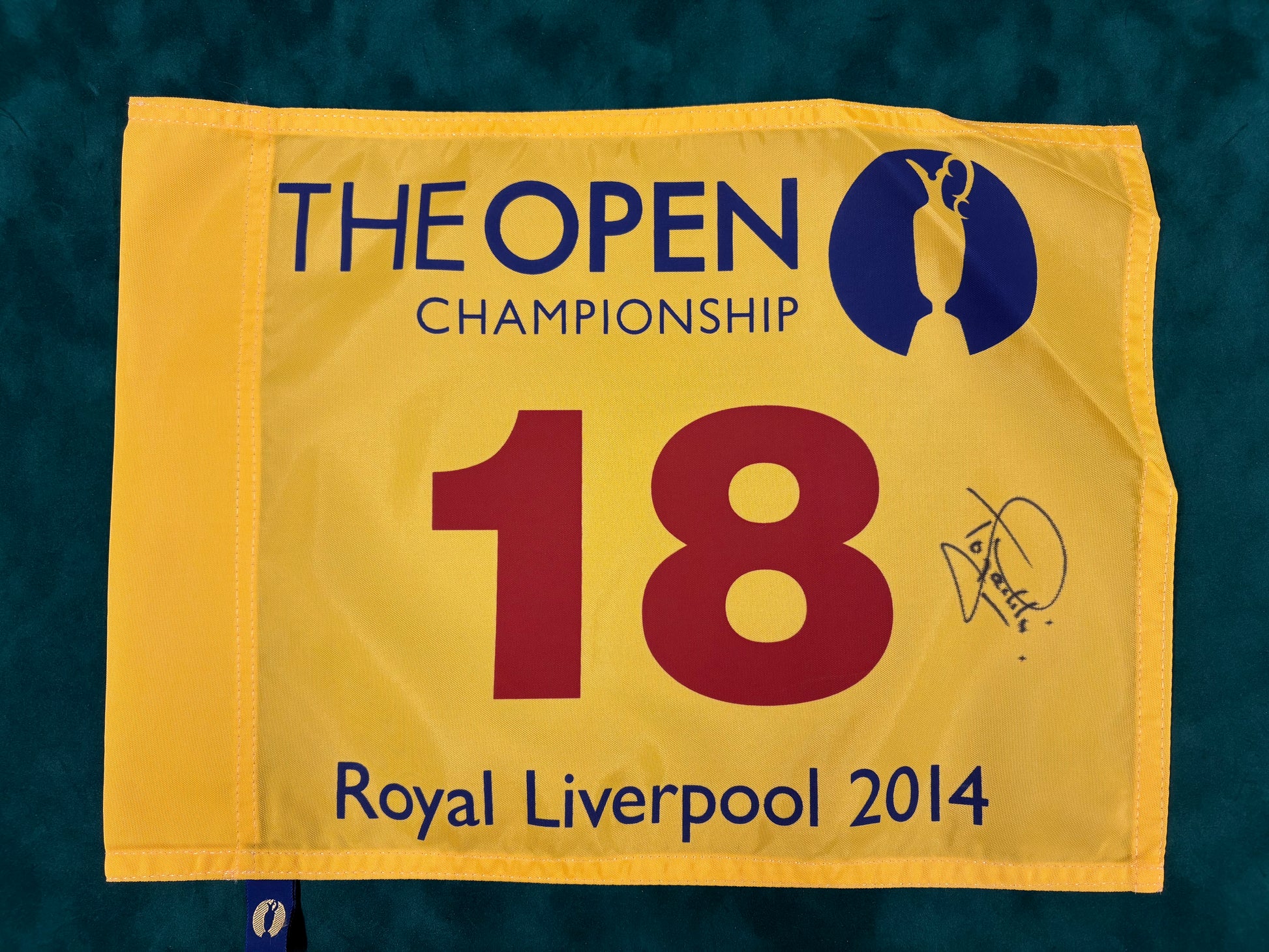 Tony Jacklin Signed 2014 Open at Royal Liverpool Golf Flag + Dealer COA