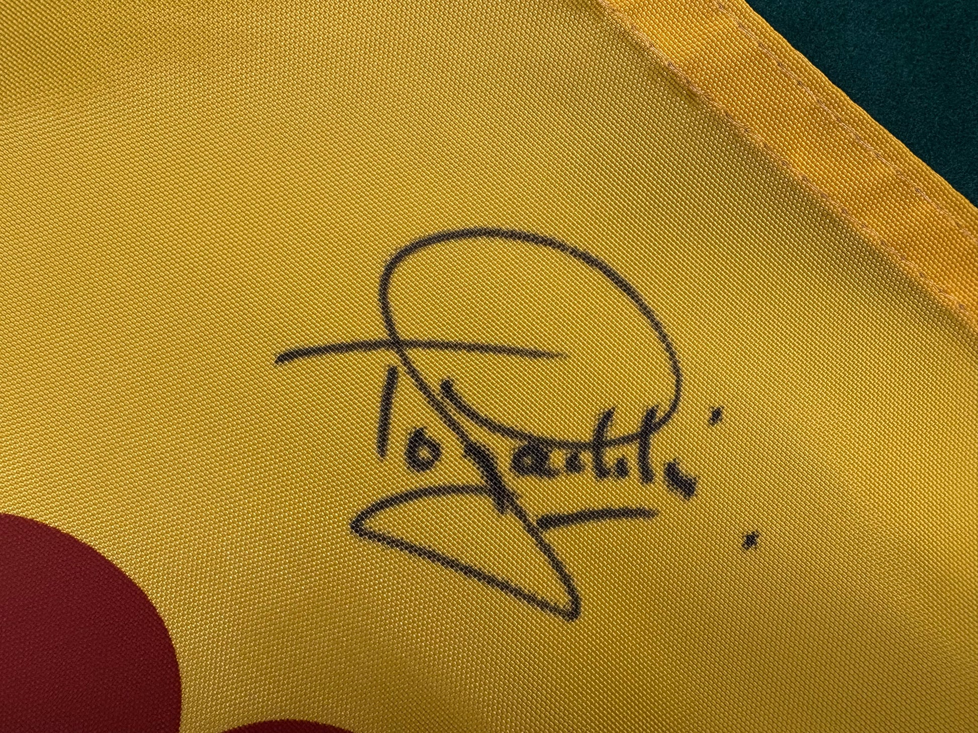 This autographed 2014 Open at Royal Liverpool Golf Flag is a must-have for any golf enthusiast. Signed by legendary golfer Tony Jacklin, this flag comes with a Dealer COA for authenticity. A prized possession for any collector, this flag showcases one of the top names in the sport.