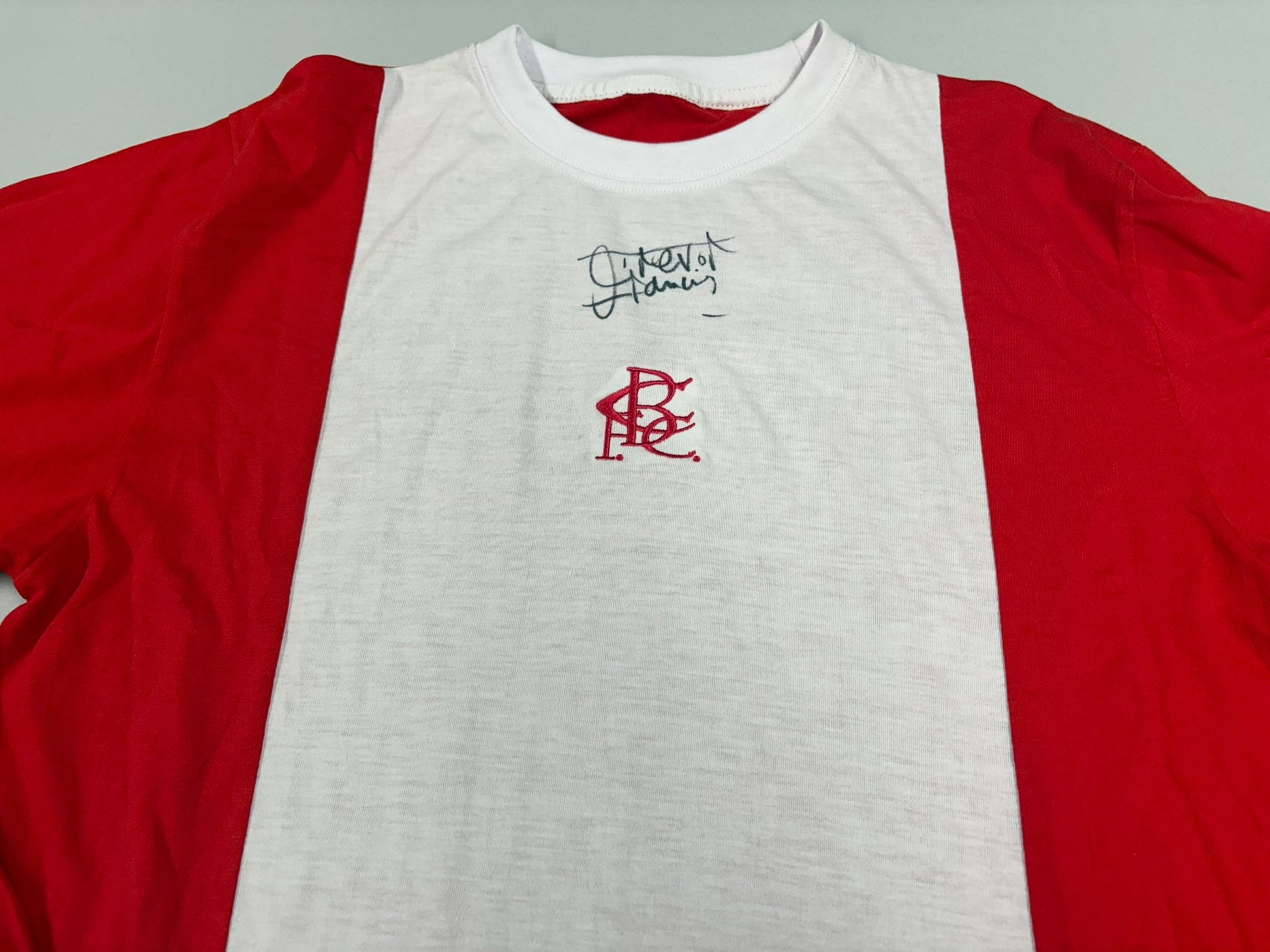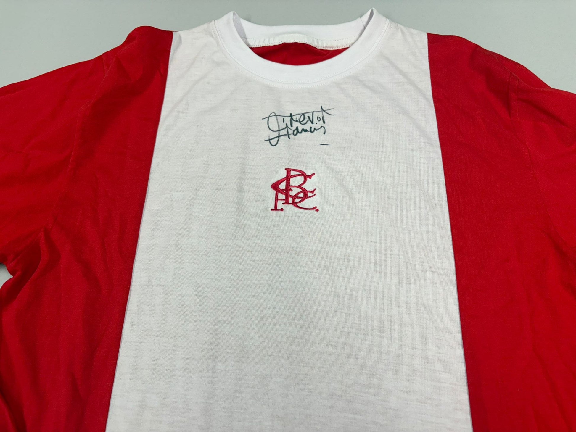 Celebrate football history with this retro 1970's Birmingham City FC shirt, personally signed by the legendary Trevor Francis. Perfect for fans and collectors, it comes with a dealer certificate of authenticity.