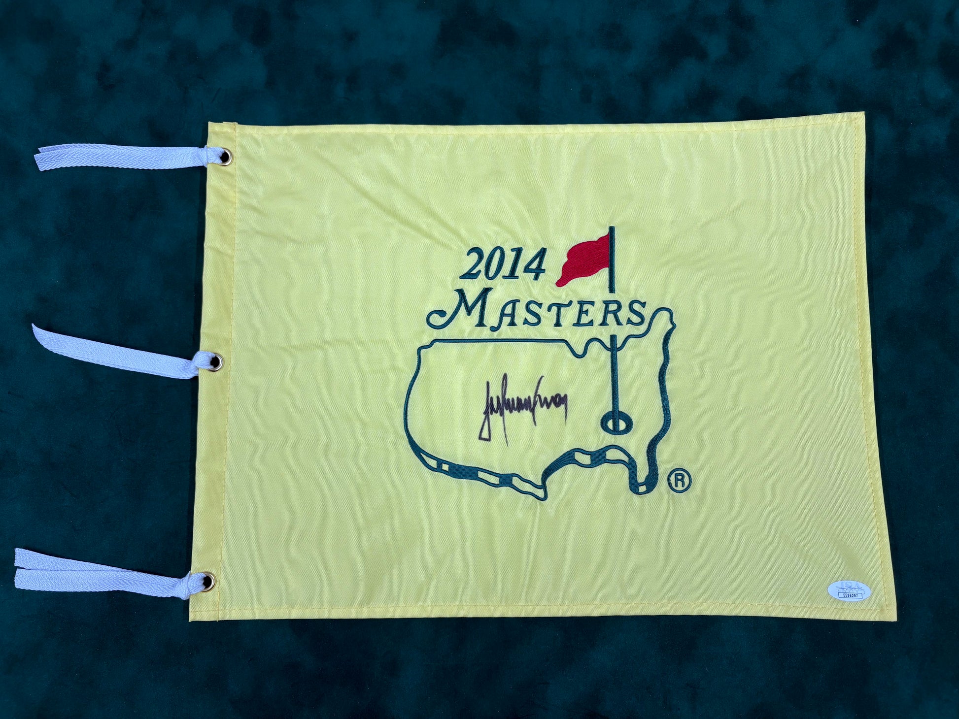 This authentic Trevor Immelman signed 2014 Masters Golf Pin Flag is a must-have for any golf fan or collector. With a Dealer COA included, you can be confident in the authenticity of this rare item. Own a piece of golf history and add a touch of expertise to your collection.