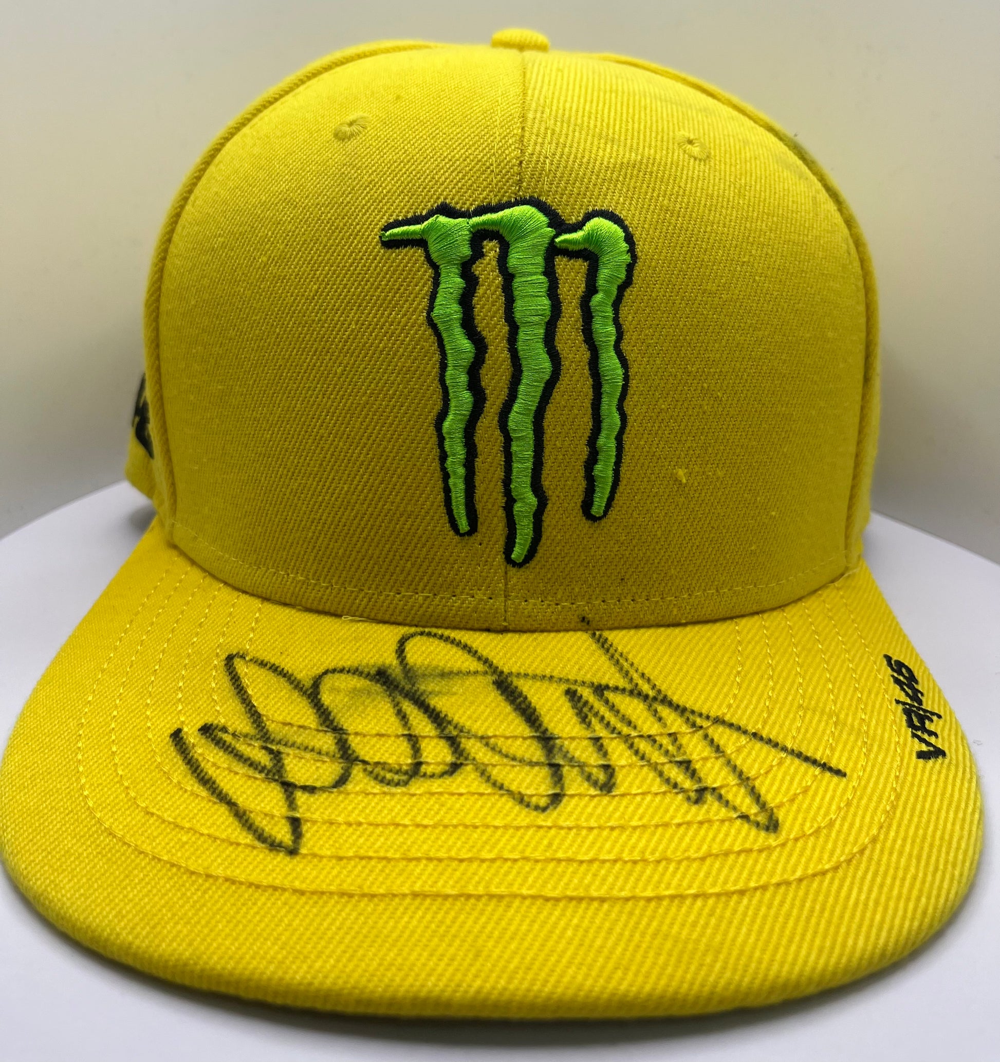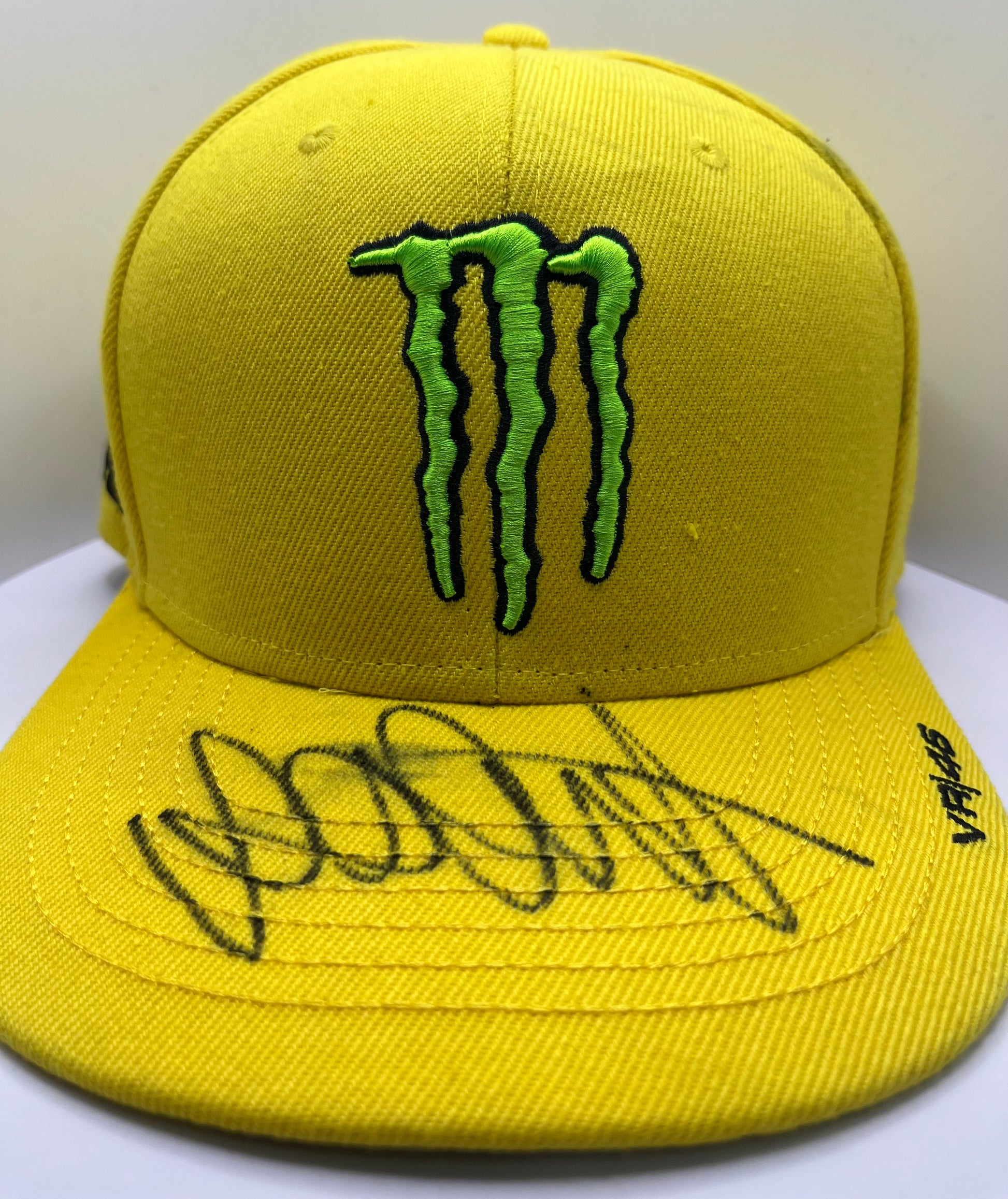 As a world-renowned MotoGP racer, Valentino Rossi needs no introduction. Show off your love for the sport and the rider with this autographed yellow flat-brim Monster Energy cap, complete with a certificate of authenticity.