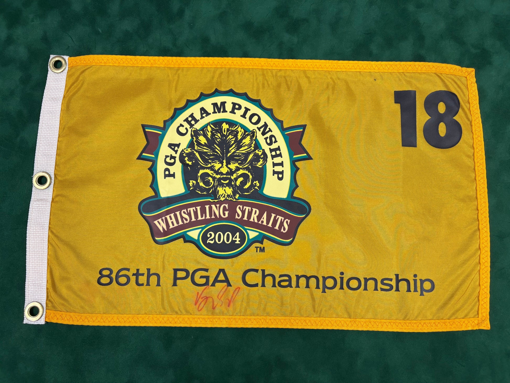 Vijay Singh Signed 86th PGA Championship at Whistling Straits Golf Flag + Dealer COA