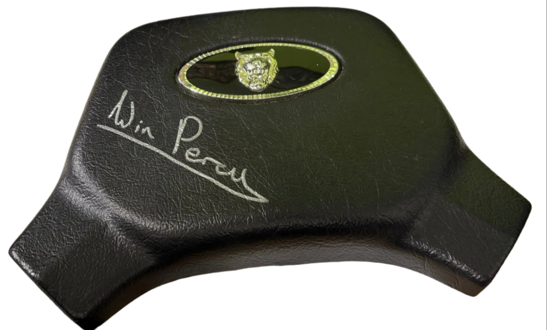Win Percy is known for being 'The World's Number One Touring Car Driver'. His signature on this Jaguar steering wheel front cover, accompanied by a certificate of authenticity, makes this a must-have for any racing fan or collector. Own a piece of racing history with this exclusive item.