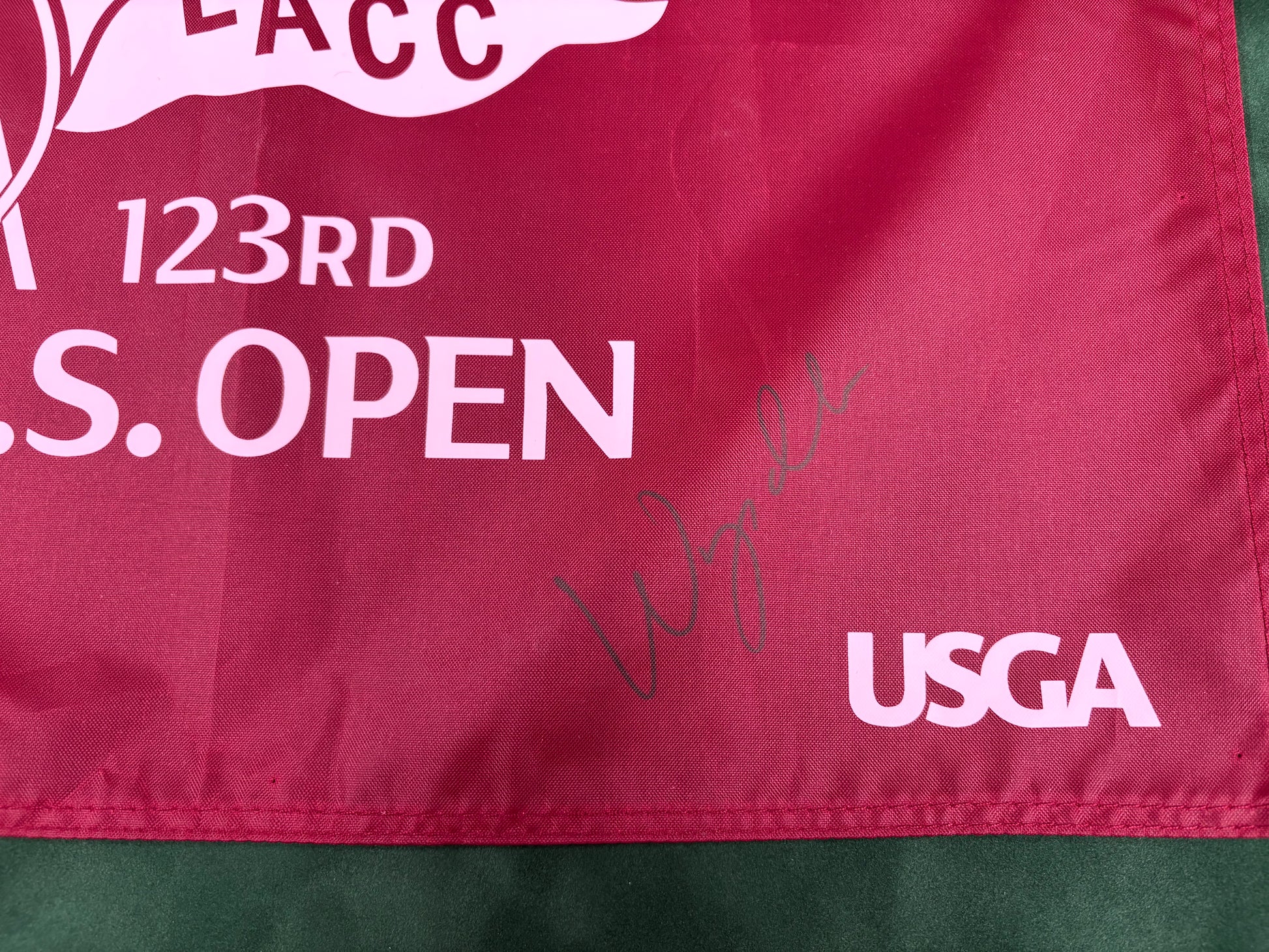 Wyndham Clark Winner Signed 123rd US Open at LACC Burgundy Golf Flag + Dealer COA