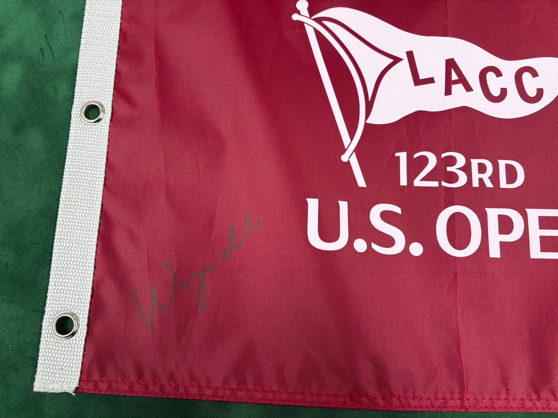 Wyndham Clark Winner Signed 123rd US Open at LACC Burgundy Golf Flag + Dealer COA (Red Screen Printed Version)