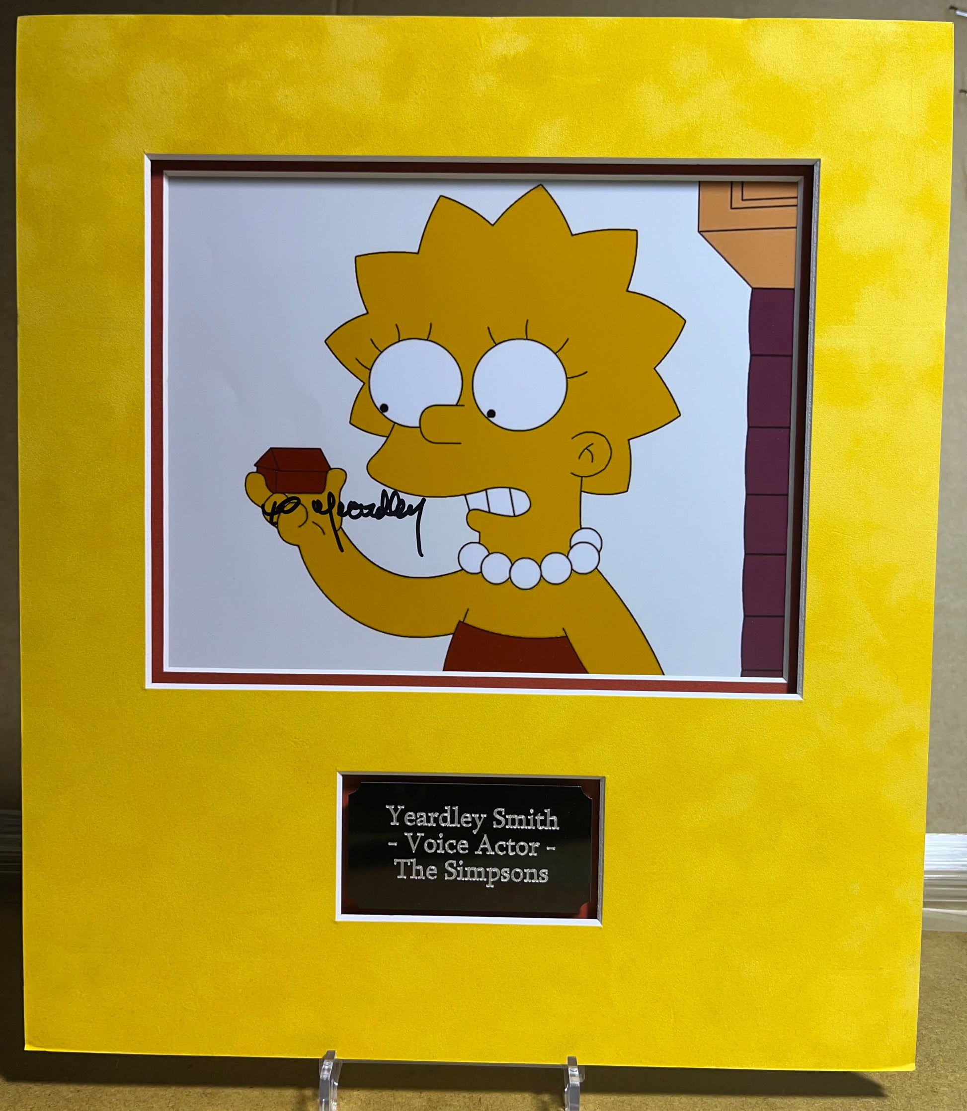 This professionally mounted 10x8 inch photo display features Yeardly Smith, the talented actress known as the voice of Lisa Simpson. The display comes with a Certificate of Authenticity, ensuring its true value. Perfect for any fan or collector.