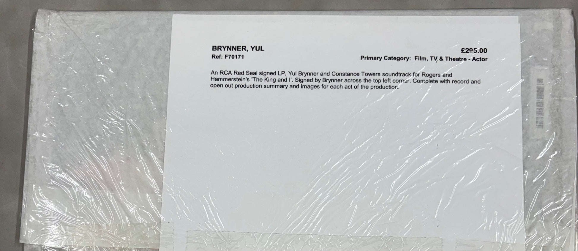 Gain a piece of Hollywood history with this Yul Brynner signed vinyl of Rodgers Hammerstein's The King and I which he made 4,625 appearances in on Broadway. This collectible includes a certificate of authenticity, making it a valuable addition to any collection.