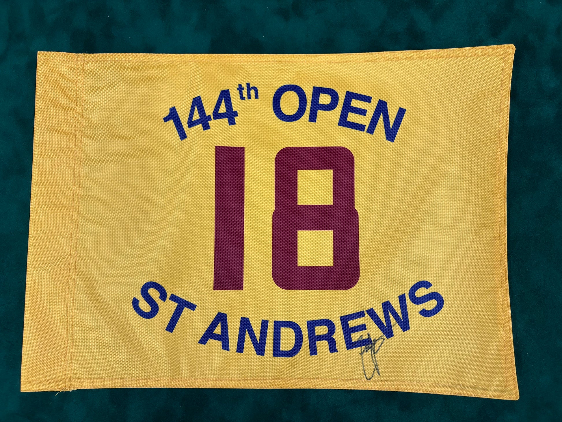 Zach Johnson Winner Signed 144th Open at St Andrews Golf Flag + Dealer COA